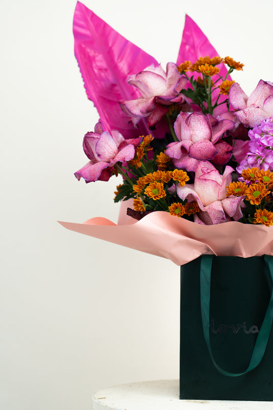 Flovia's Mixed Flowers collection in Dubai offers a gorgeous assortment of colorful, hand-tied bouquets that are ideal for any occasion. Come experience the beauty of nature's best blossoms. Our beautifully designed mixed flower bouquets combine roses, lilies, tulips, and seasonal flowers for a modern, sophisticated touch, whether you're celebrating a birthday, anniversary, or just want to make someone's day. Every bouquet is expertly created to guarantee top quality and same-day flower delivery throughout Dubai and the United Arab Emirates. With Flovia's reliable online flower shop, you may get our mixed flower arrangements right now to bring happiness, love, and smiles to your loved ones.