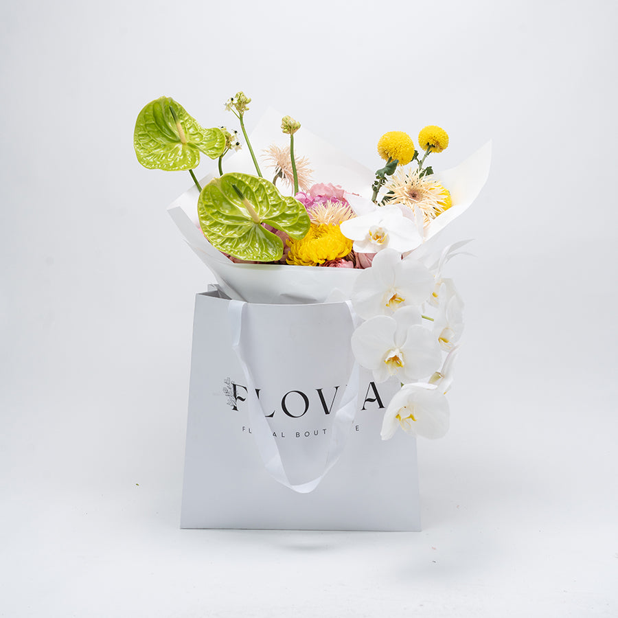 This luxuriant flower arrangement, brimming with the freshest seasonal blossoms, is intended to reflect the beauty of a blooming garden. Our skilled florists meticulously hand-pick each stem and arrange them elegantly to create a magnificent display that exudes joy, freshness, and elegance.