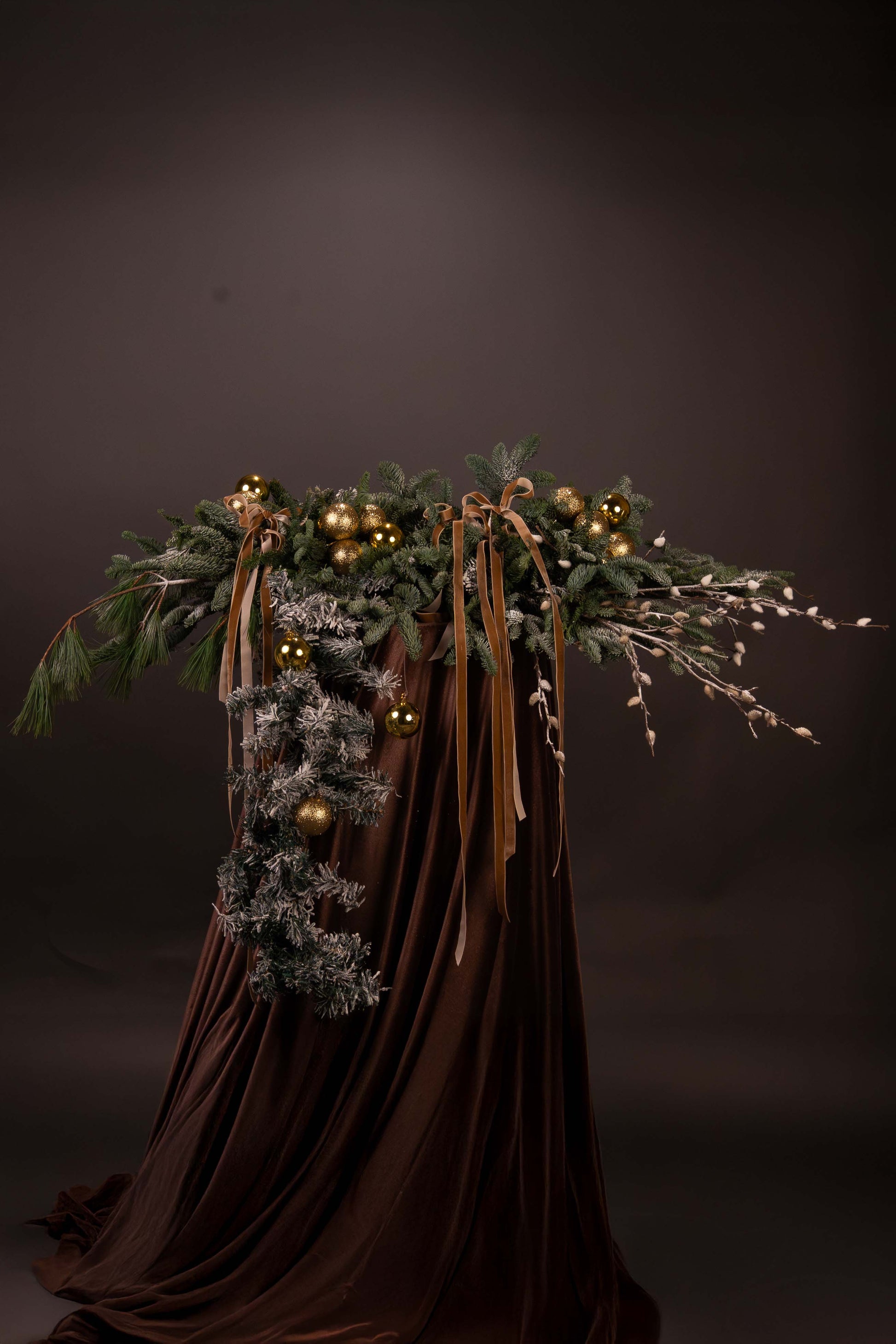 Elevate your holiday décor with our Luxury Christmas Table Arrangement — a stunning blend of fresh evergreens, frosted branches, gold ornaments, and soft velvet ribbon. Designed for long tables, consoles, and holiday gatherings, this arrangement brings richness and texture to any space.