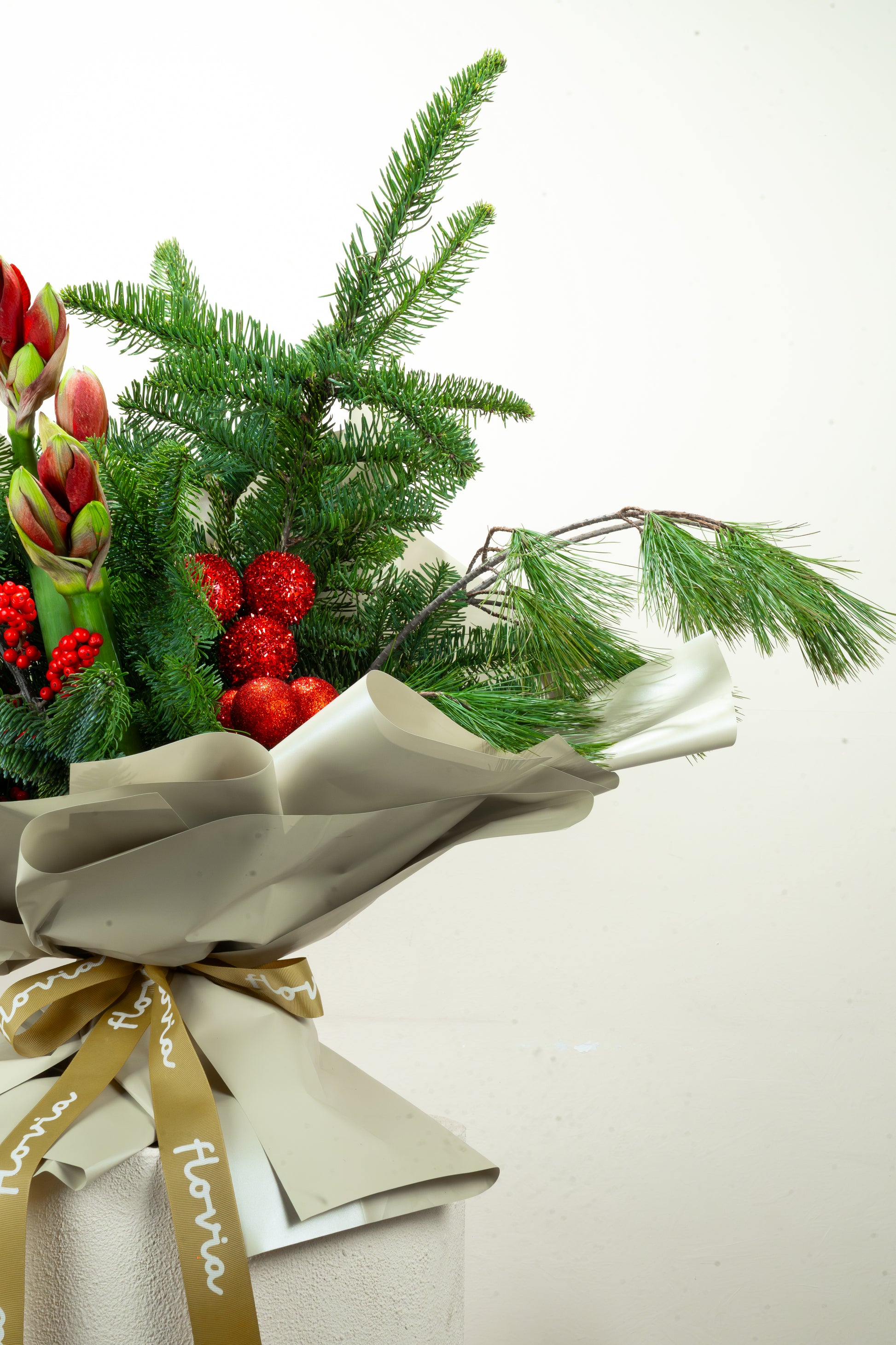 Bring the magic of the holidays into any home with our Winter Wonderland Christmas Bouquet. Featuring rich red roses, snowy white blooms, festive berries, and fresh evergreens, this arrangement captures the cozy charm of Christmas. Perfect as a gift or centerpiece, it arrives beautifully wrapped and ready to delight.